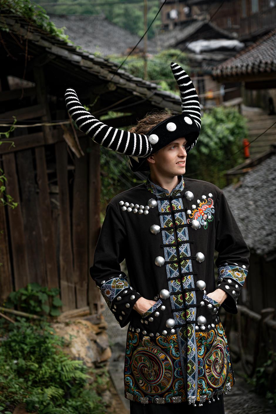 adam mcilmoyle dons ethnic costumes in a miao village in southwest china's guizhou province.